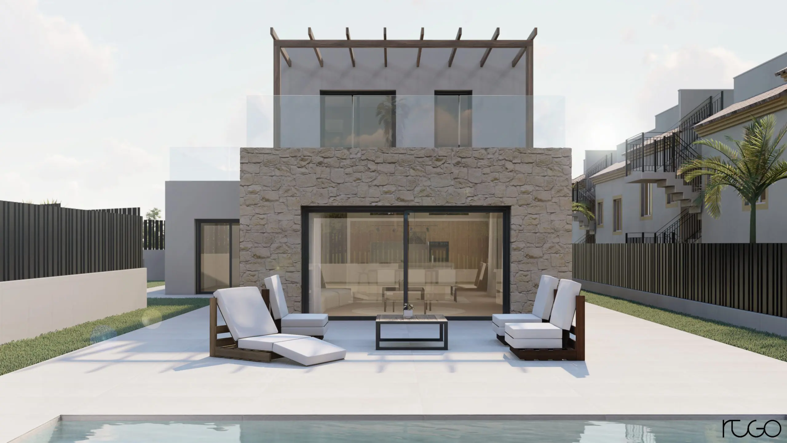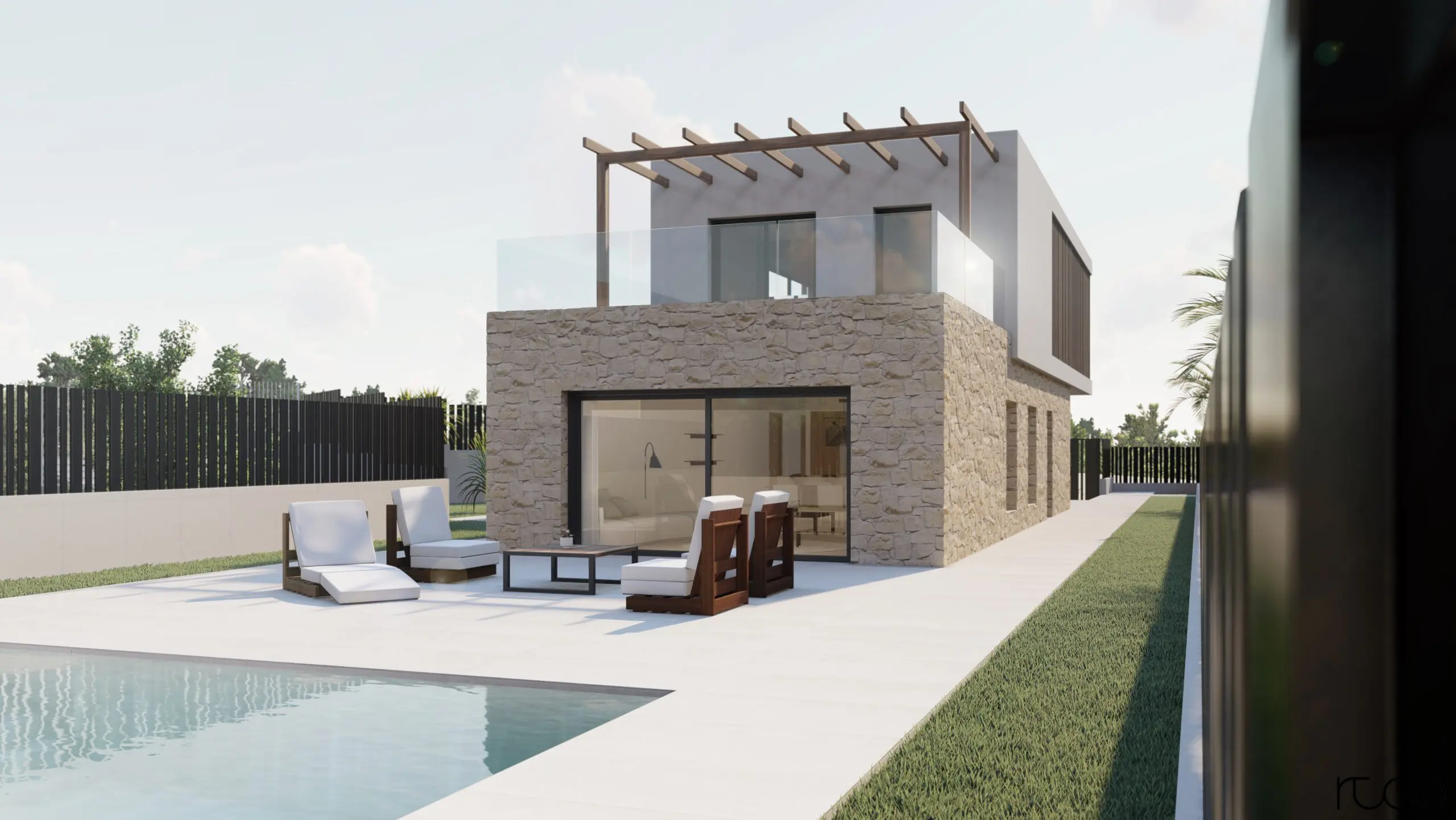 El proyecto se centra en dar una solución a la parcela existente con el fin de implementar una vivienda unifamiliar. El resultado es esta construcción de formas y líneas simples, que fuera de lo complejo, explota todas las posibilidades de la citada parcela, y otorga todo un abanico de posibilidades de vivir y disfrutar la vivienda, siempre sin dejar atrás el lado escénico y estético de la arquitectura.