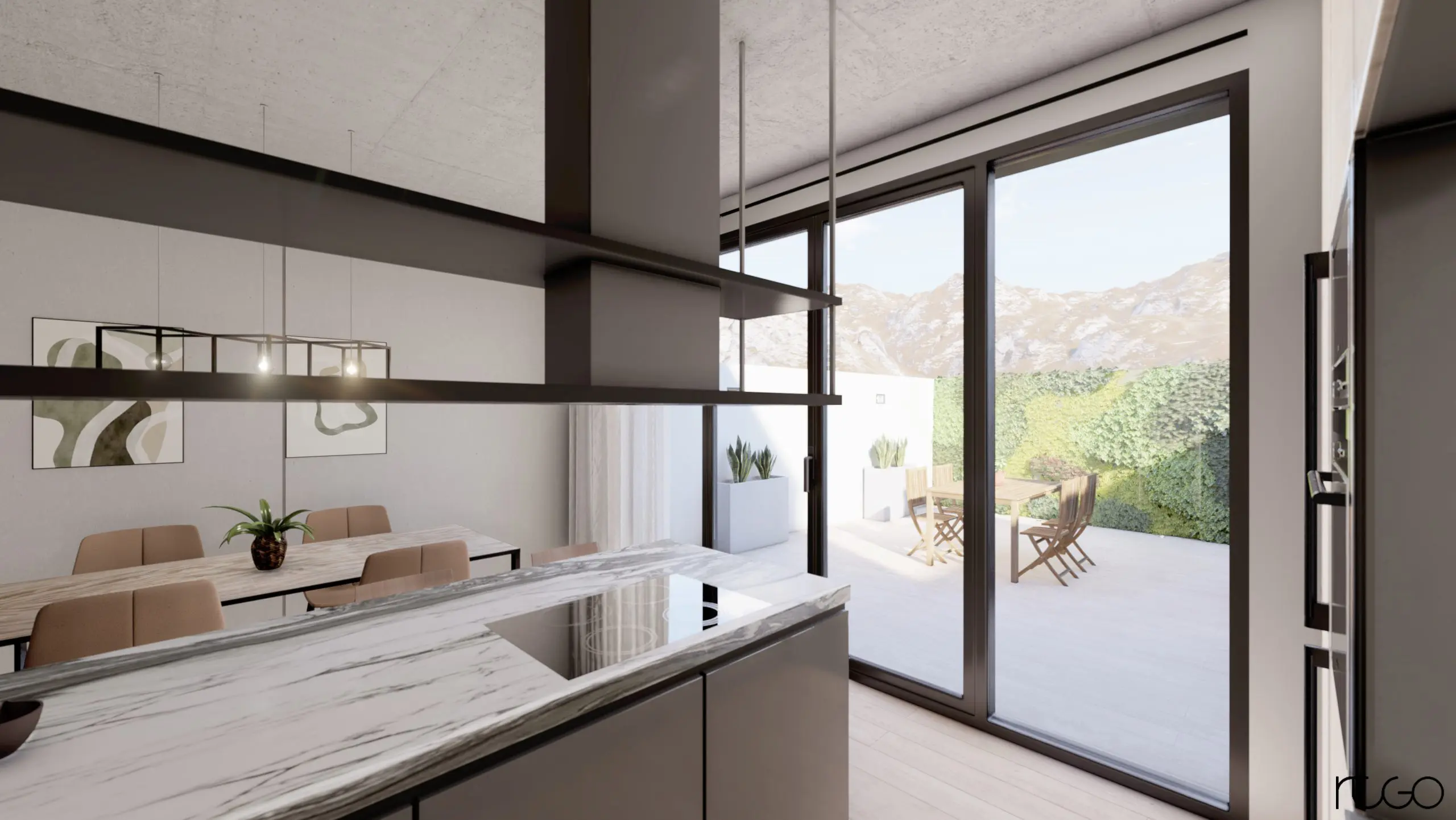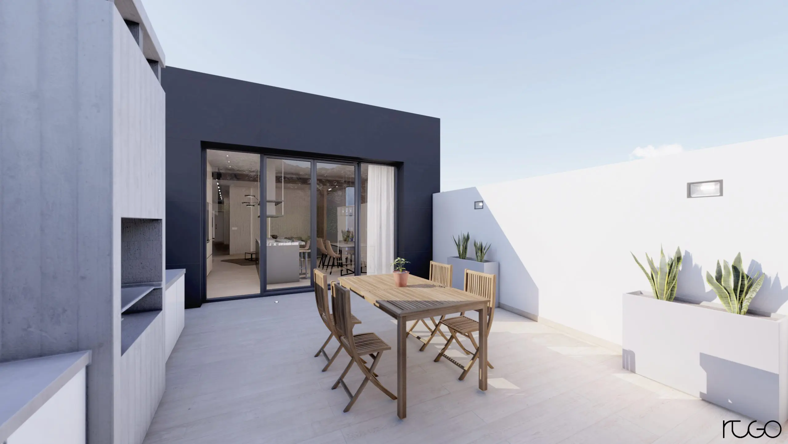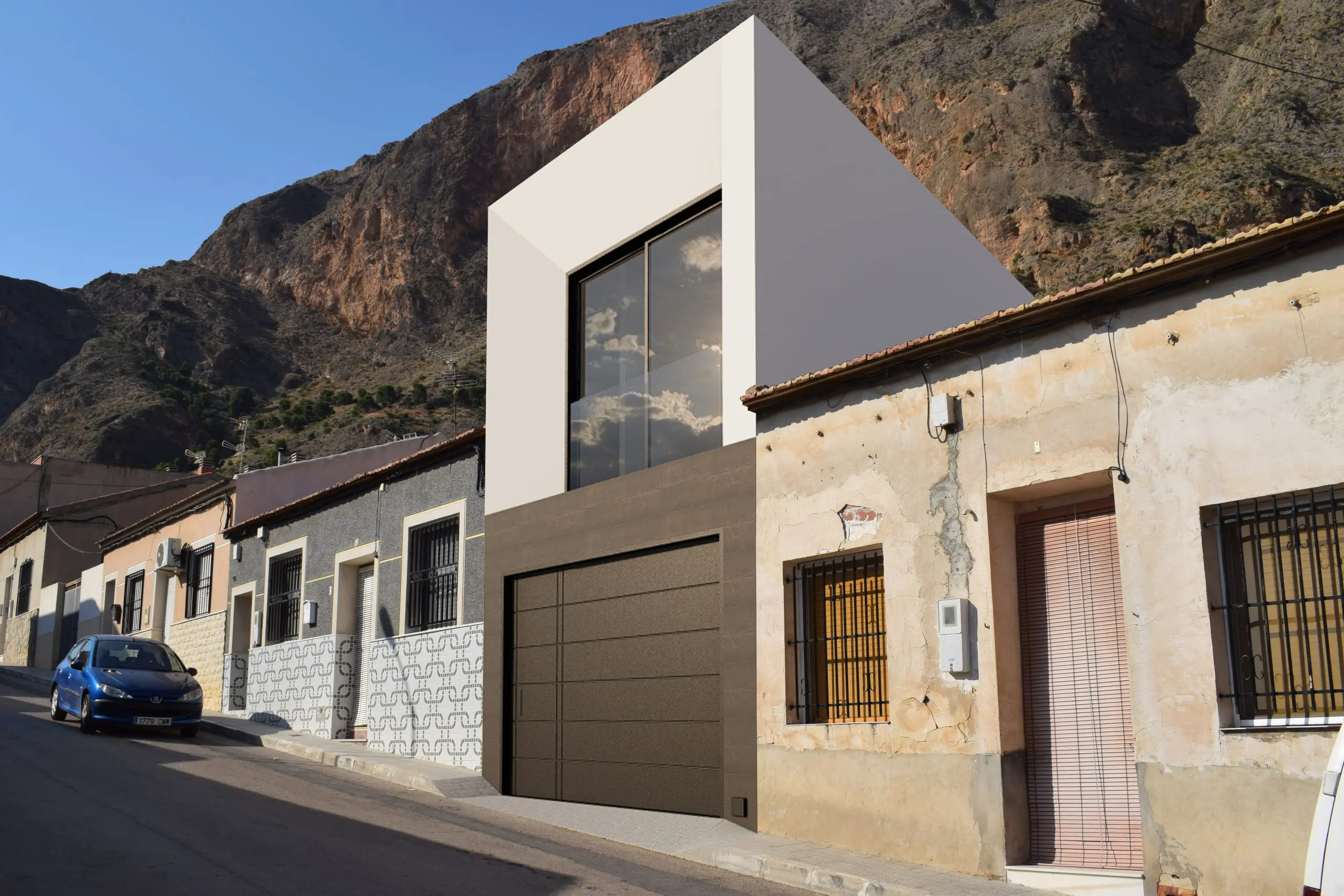 Proyecto entre medianeras con vistas a la sierra de Redován, ejecutado con estructura metálica, sistemas singulares y montajes industrializados.