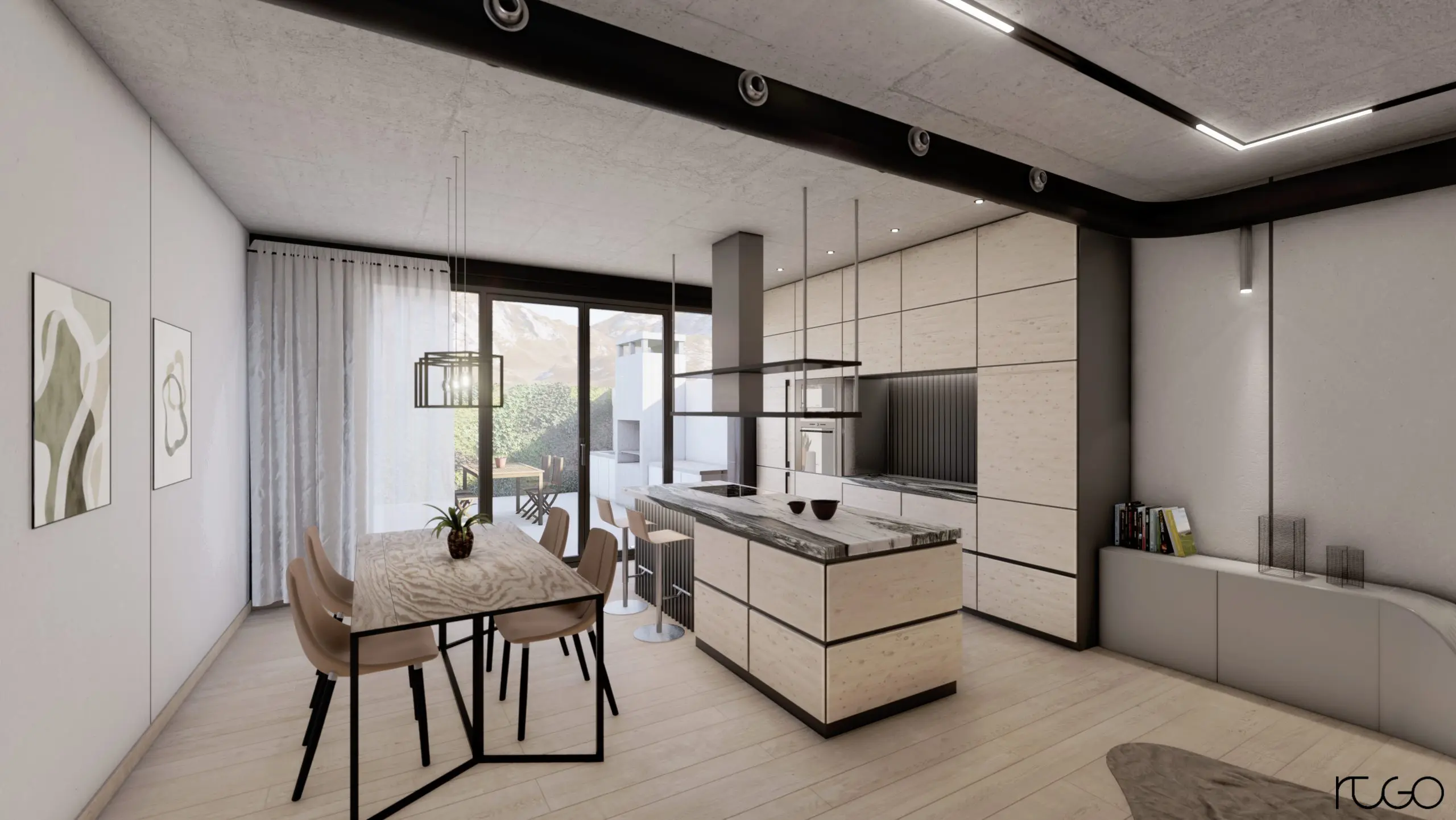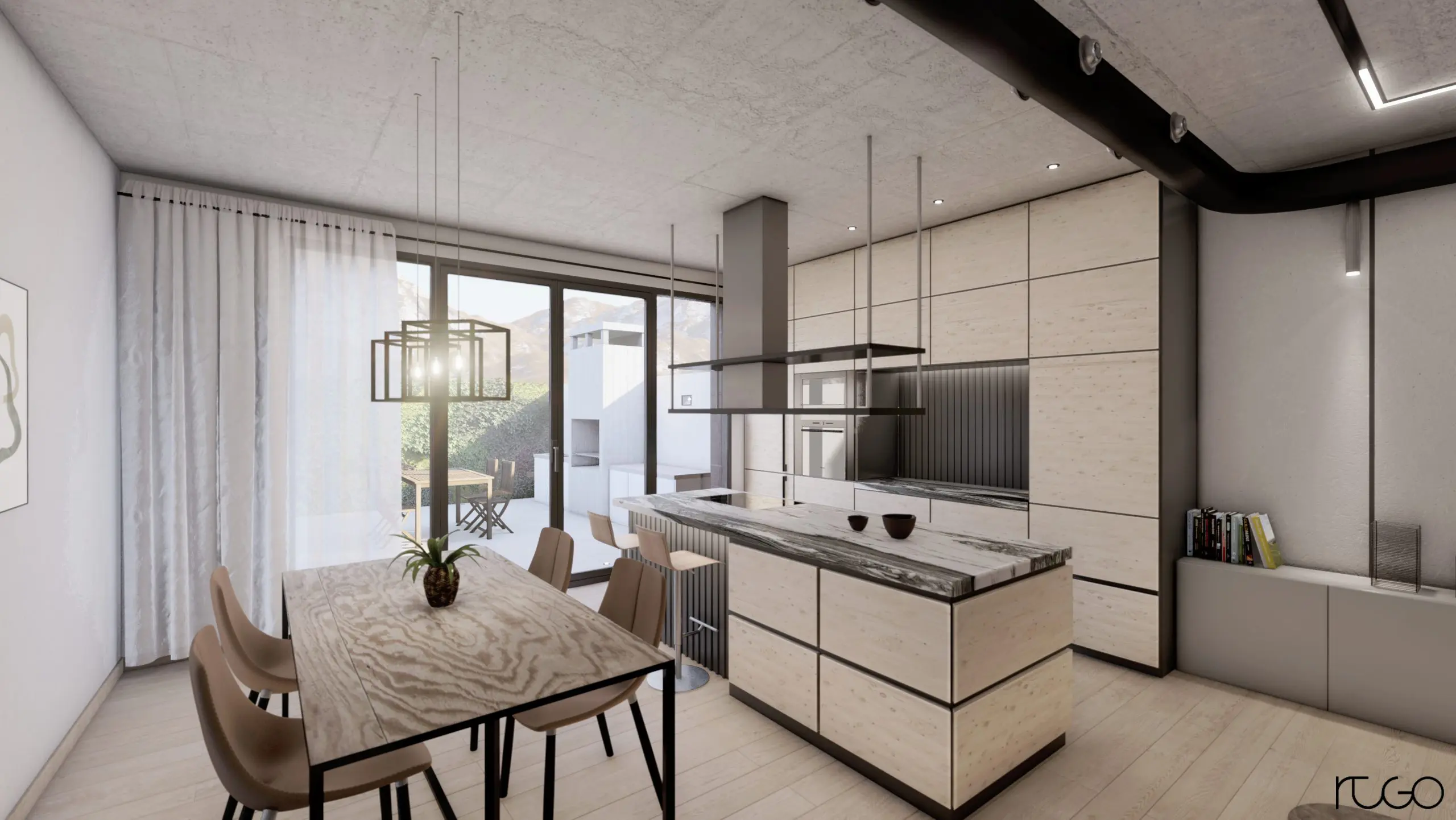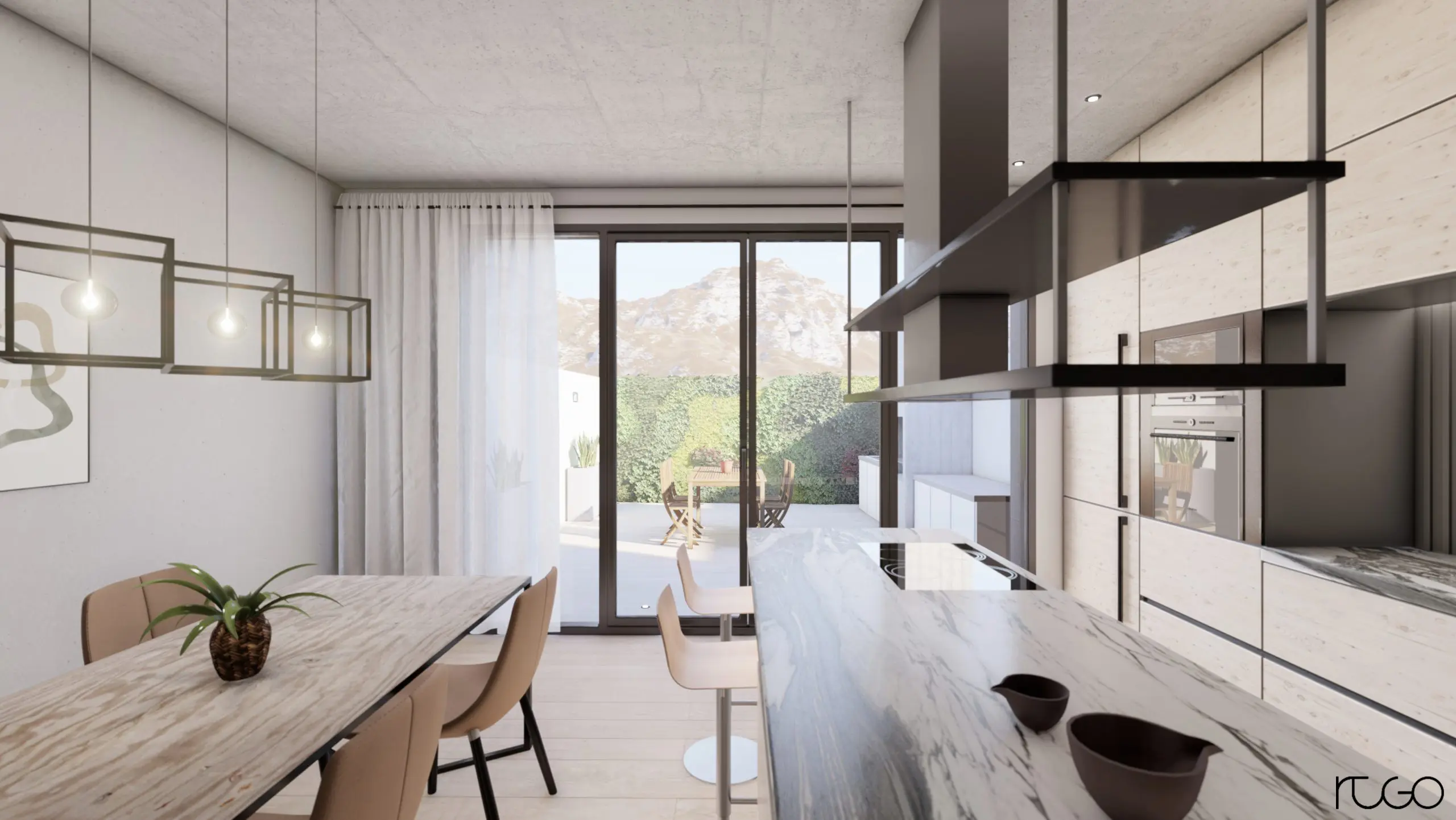Proyecto entre medianeras con vistas a la sierra de Redován, ejecutado con estructura metálica, sistemas singulares y montajes industrializados.